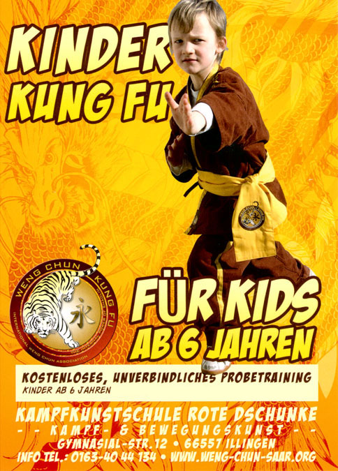 Weng Chun Kung Fu mit Kindern und Jugendlichen – eine Schule fürs Leben!In einem unverbindlichen Probetraining können Kinder und Jugendliche herausfinden, ob ihnen Weng Chun Spass macht. Für das Probetraining genügen Hallenschuhe, Sport- oder leichte Freizeitbekleidung und etwas Trinkwasser. Die Anwesenheit eines Erziehungsberechtigten ist beim ersten Training notwendig. Ausrüstung sowie Trainingsanzüge bzw. T-Shirts können später vor Ort erworben oder bestellt werden.